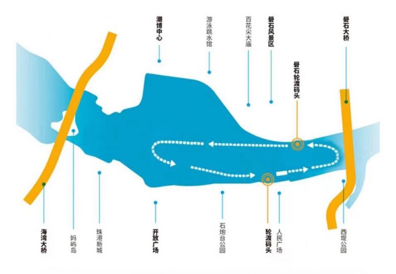汕头内海湾“启勉”号专线航行区域主要在鲁石大桥与海湾大桥两座姊妹桥之间的内海湾,途经礐石风景区、白花尖大庙、跳水馆、潮博馆、海滨长廊、时代广场灯光秀、石炮台公园、人民广场、海关钟楼、西堤公园等10个景点。  图源:汕头市交通运输集团轮渡有限公司 礐石风景名胜区位于汕头达濠区内海湾南岸,与老市区隔海相望,面积12平方公里,是广东省第一批省级风景名胜区;也是潮汕地区的首批国家AAAA级旅游区,属于汕头八景之首。 汕头市游泳跳水馆是全国第九届运动会跳水项目比赛场馆,由游泳馆和跳水馆组成,先后承办了多项全国赛事;是汕头特区一座标志性建筑和最具现代气派的大型公共体育设施。 潮博中心建筑风格取材于红头船及潮汕民居,面向汕头内海湾,体现了“山海交融”的特色;能够全方位展示潮汕文化,也是华侨经济文化合作试验区的重要文化展示交流载体。 妈屿岛位于汕头港出海口,与德洲岛和升旗山相呼应,成鼎足之势;是汕头港屏障及著名的旅游胜地。妈屿岛风景区,建有“天后古庙”、象征汕头开埠的潮海关、妈印石等景点。 汕头海湾大桥是中国中国首座大型预应力混凝土悬索桥,位于广东省汕头市境内连接濠江区与龙湖区的跨海通道,南起南滨路,上跨礐石海及妈屿岛,北至泰星路;线路全长2500米,正桥长961.8米,位于礐石海之上,是沈海高速公路(国家高速G15)重要组成部分之一,也是组成汕头市区东部的城市主干道路之一。 时代广场是汕头中心城区一处大型的绿化广场,被称为“汕头大客厅”。周边的星河大厦、汕头市图书馆、苏宁广场等建筑群夜间灯光璀璨,是市民休闲娱乐的一个好去处。 海滨长廊位于汕头市中心区内海湾北侧,是一座长2000米的带状公园。海滨长廊海天辉映、视野开阔、绿树成荫,誉称“长廊观海”,属于汕头新八景之一,也是观赏汕头内湾港的甚佳去处。 西堤公园位于汕头老市区镇邦路尾,规划面积5.2公顷。西堤公园见证了汕头从渔村成为港口商埠的时代变迁,通过“侨批”元素,让游客体验到独具潮汕特色的“侨批文化”。 举报