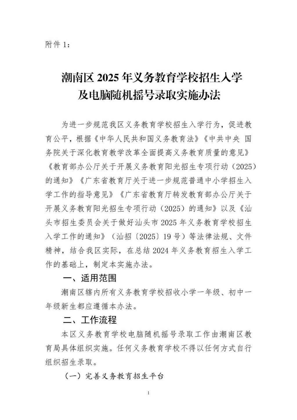 1.潮南区2025年义务教育学校招生入学及电脑随机摇号录取实施办法