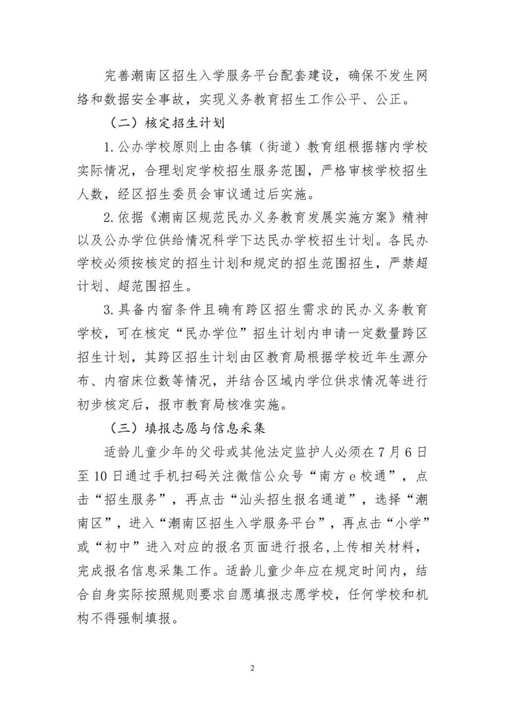 2.依据《潮南区规范民办义务教育发展实施方案》精神以及公办学位供给情况科学下达民办学校招生计划。各民办学校必须按核定的招生计划和规定的招生范围招生,严禁超计划、超范围招生。