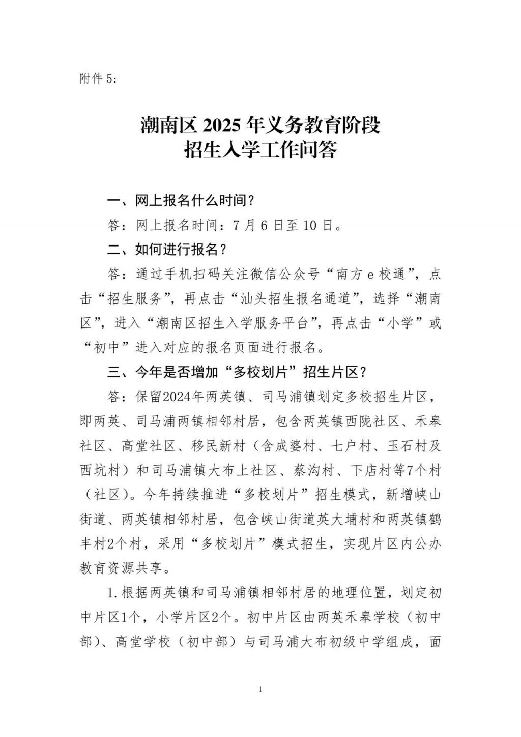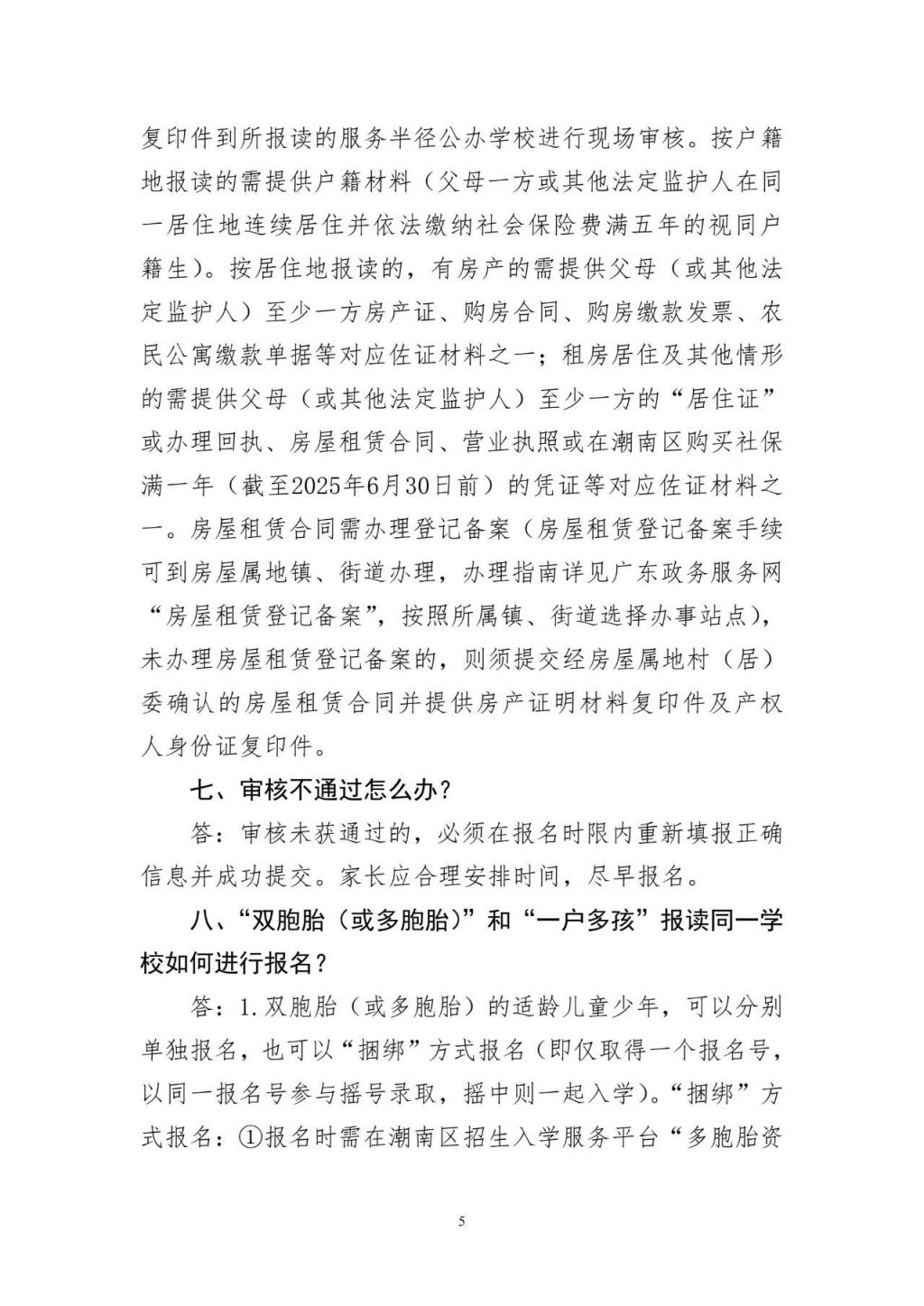 5.潮南区2025年义务教育阶段招生入学工作问答
