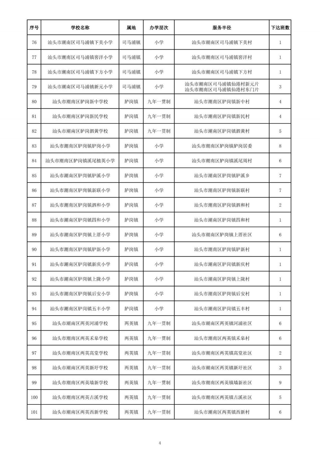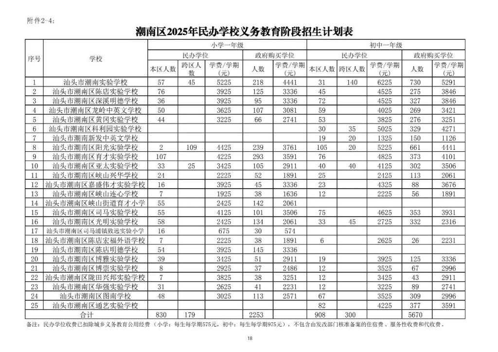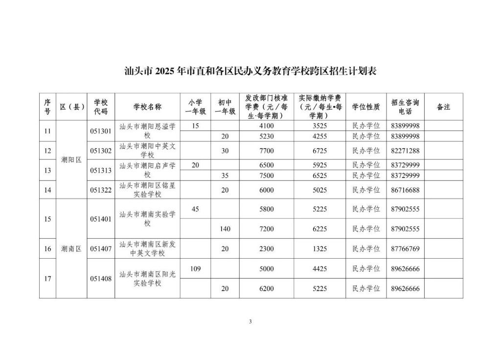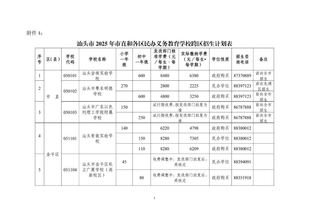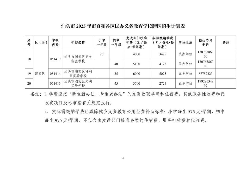 4.汕头市2025年市直和各区民办义务教育学校跨区招生计划表