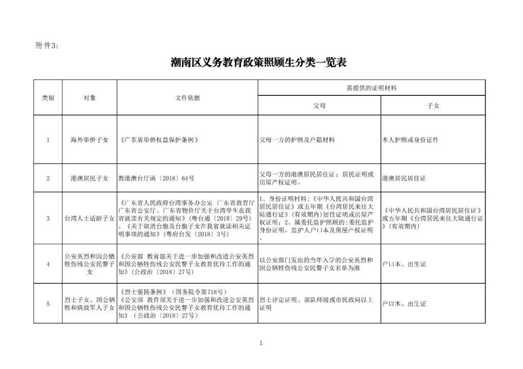 3.潮南区义务教育政策照顾生分类一览表