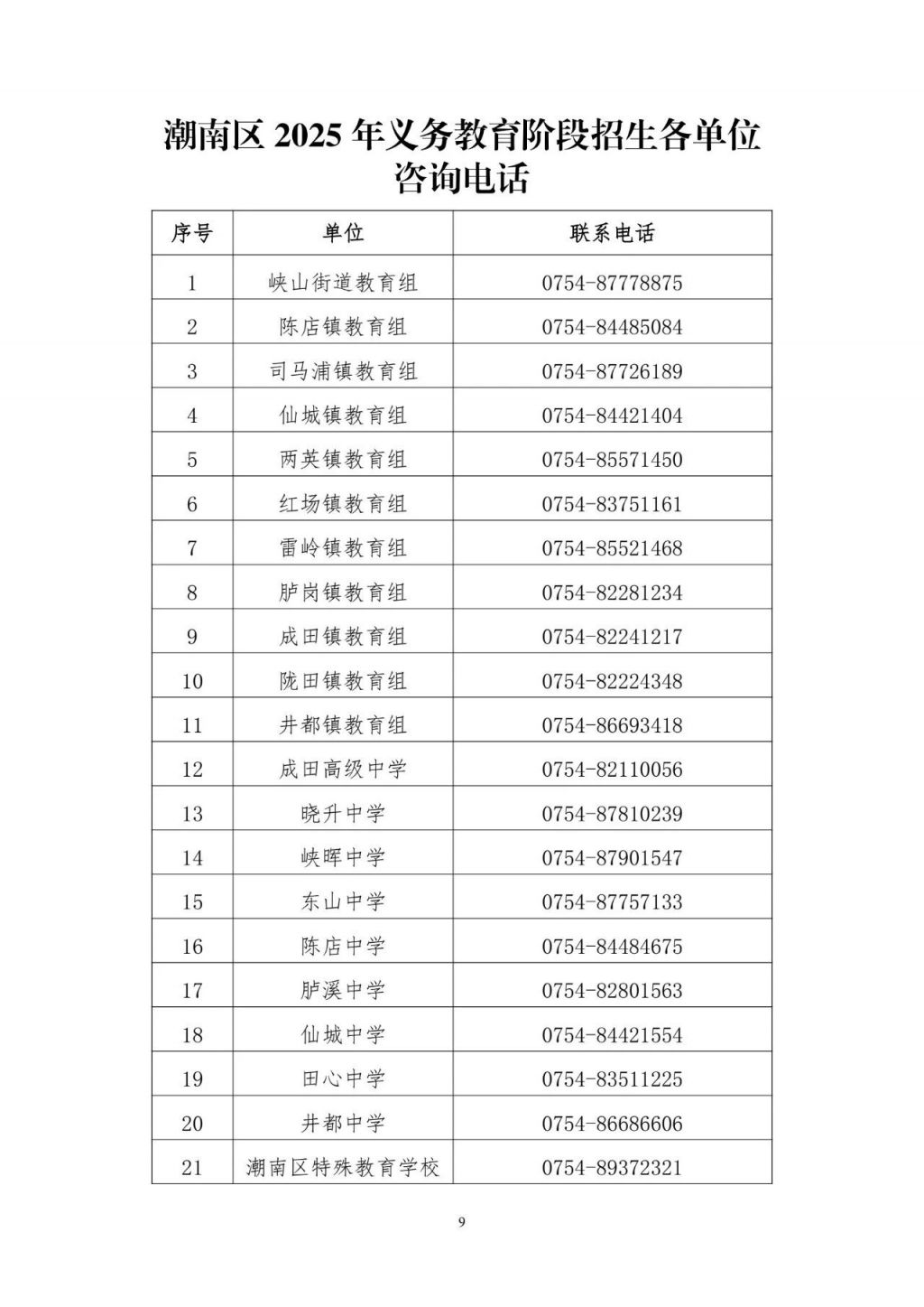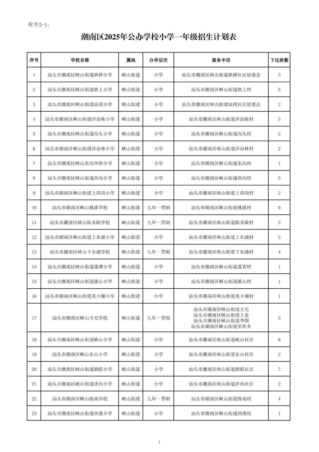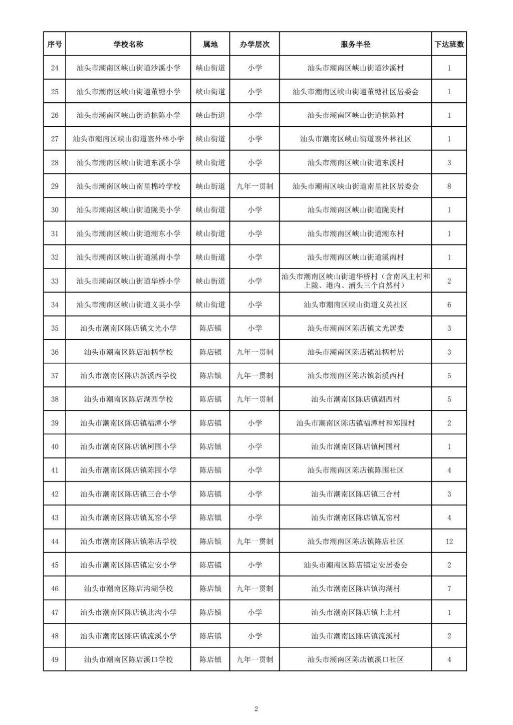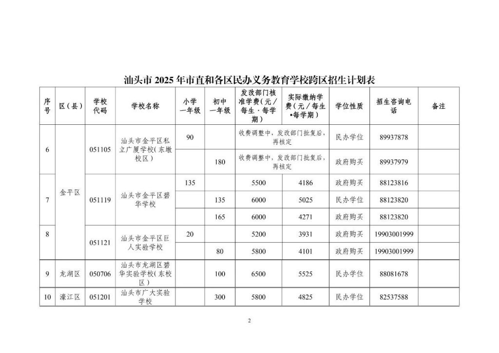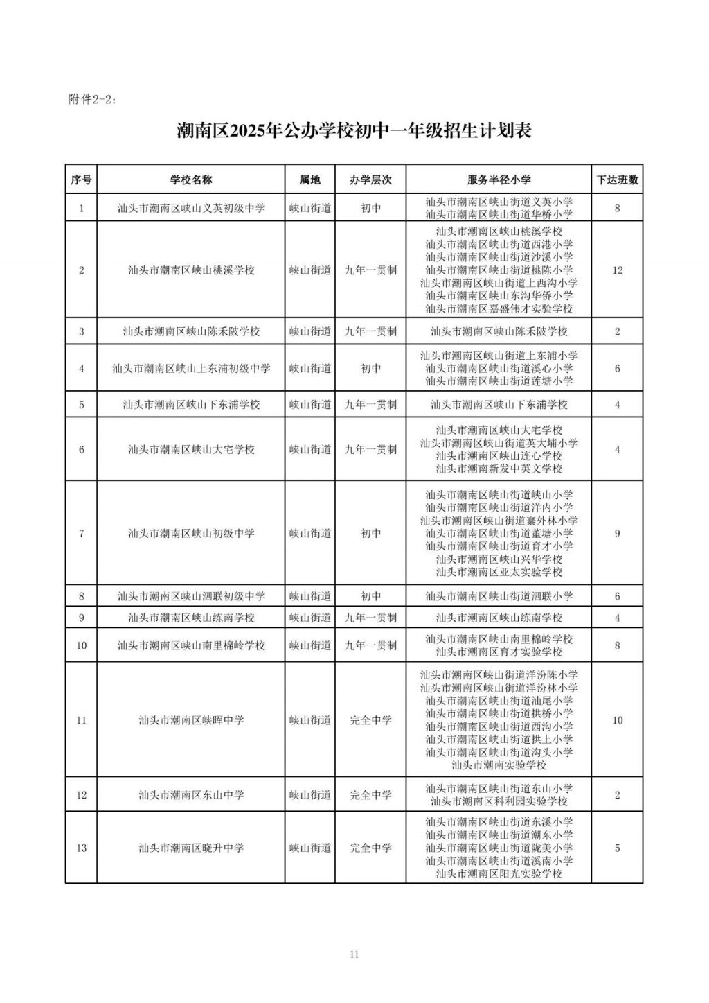 2.潮南区2025年义务教育阶段学校招生计划表