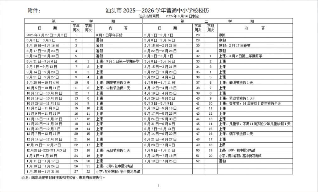 由于我无法实时访问互联网获取最新信息,我无法提供汕头市2025-2026学年普通中小学校历的具体发布情况。通常,学校历会在每年的暑假前后由当地教育局或学校官方发布。